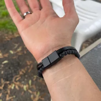 I bought this bracelet for my husband and now he thinks he’s hot stuff lol. It’s well made, good quality and easy to put on and off.